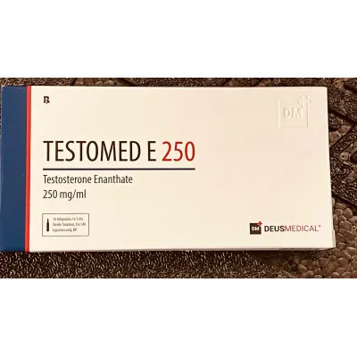 TESTOMED E 250 (Testosterone Enanthate) is one of the many esterified variants of Testosterone available. It is an injectable compound with a slow rate of release due to the larger Enanthate ester attached to the Testosterone molecule. This augments the Testosteron..